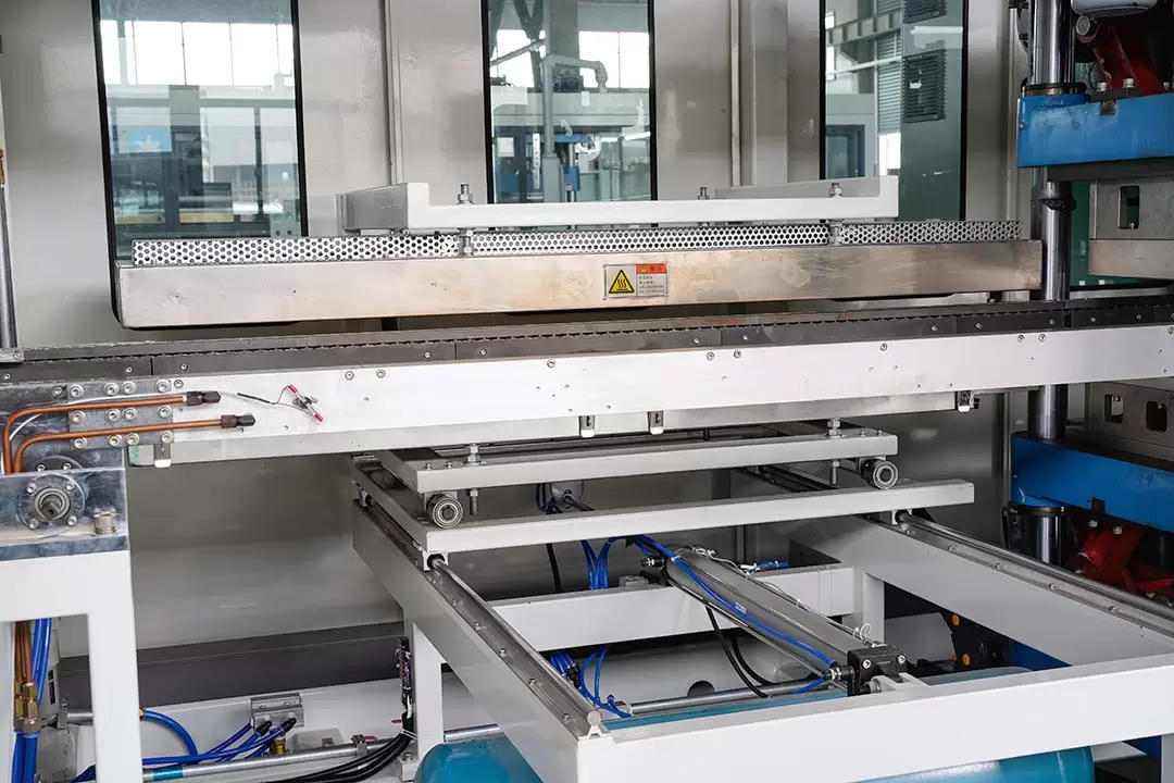ছাঁচনির্মাণ স্টেশন: উন্নত ছাঁচ নকশা এবং চাপ প্রযুক্তি প্লাস্টিকের শীটকে ছাঁচনির্মাণ ছাঁচে সুনির্দিষ্টভাবে তৈরি করতে সক্ষম করে, প্রতিটি পণ্যের ধারাবাহিকতা এবং উচ্চ গুণমান নিশ্চিত করে।