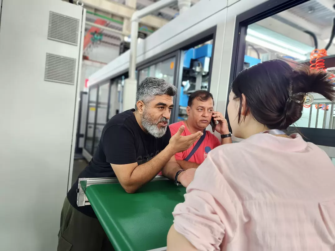 ২১শে আগস্ট, ২০২৩ তারিখে, আমাদের ভারতীয় গ্রাহক কারখানায় পড়াশোনা করতে এসেছিলেন। গ্রাহক চিন্তিত ছিলেন যে চীন থেকে ভারতে কমিশনিং ইঞ্জিনিয়ারের ভিসার জন্য আবেদন করা কঠিন হবে, তাই গ্রাহক যত তাড়াতাড়ি সম্ভব উৎপাদন এবং পাঠানোর জন্য সরঞ্জাম জ্ঞান শিখতে আমাদের কারখানায় আসার উদ্যোগ নেন। আমরা আমাদের সহায়তার জন্য গ্রাহককে ধন্যবাদ জানাই। বোঝাপড়া এবং সহায়তার মাধ্যমে, গ্রাহক আমাদের কোম্পানিতে একটি TTF-700A স্বয়ংক্রিয় তিন-স্টেশন প্লাস্টিক থার্মোফর্মিং মেশিন এবং ১১ সেট ছাঁচ কিনেছেন, যা ৮-বগির টেকওয়ে বক্স এবং ৩-বগির টেকওয়ে বক্স পিপি উপকরণ এবং বিভিন্ন গভীরতার পিইটি প্লাস্টিকের ক্ল্যামশেল বক্স তৈরি করতে ব্যবহৃত হয়। মূলত ফলের সালাদ প্যাকেজিংয়ের জন্য ব্যবহৃত হয়।